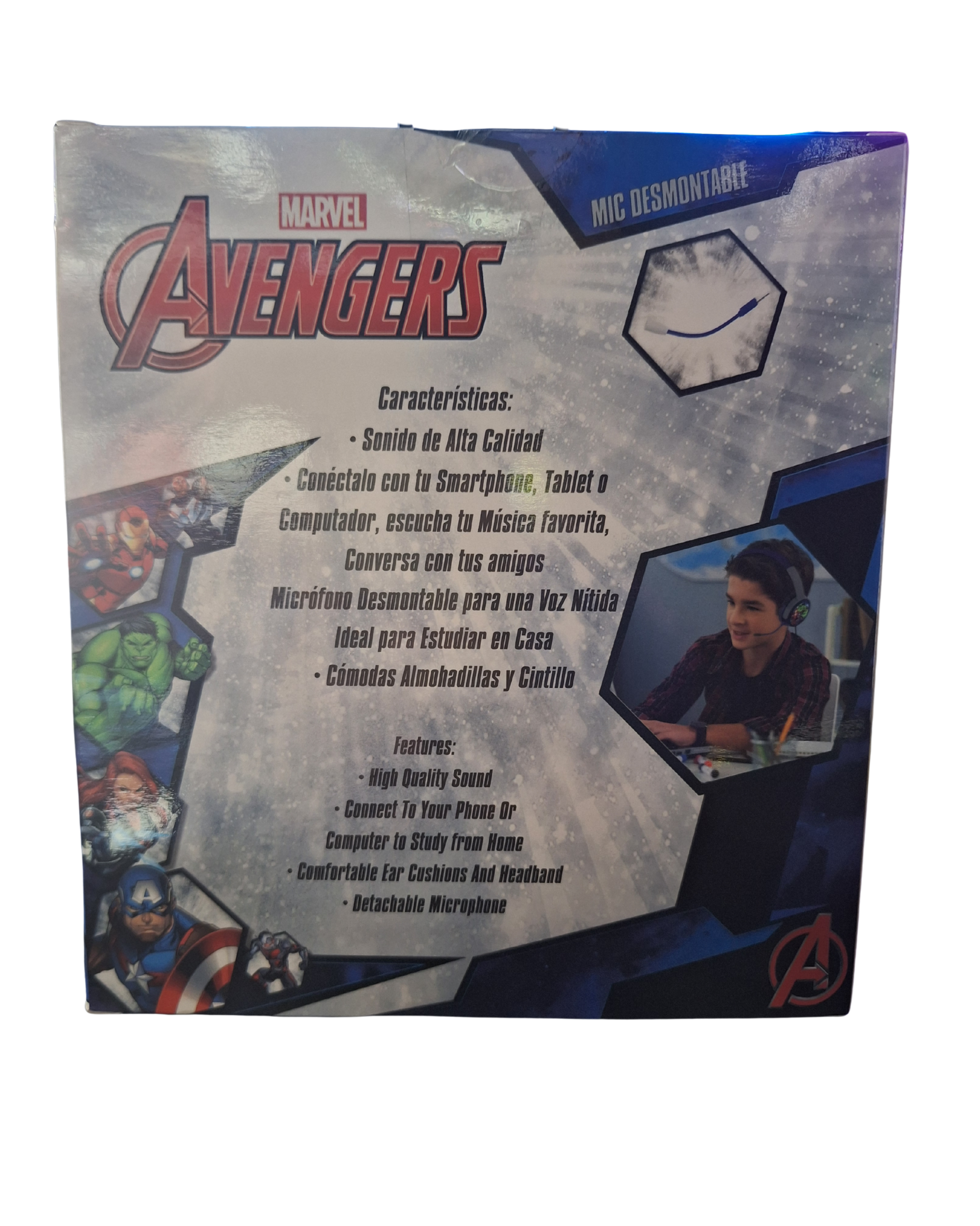 ¡Lleva la fuerza de Hulk y el estilo de Iron-Man a tu día a día! Los audífonos de Marvel combinan un diseño Fuerte y exclusivo con la tecnología de audio avanzada, haciendo de cada música una experiencia Asombrosa. Son el accesorio perfecto para los fans de Iron-Man de todas las edades que buscan comodidad, calidad y un toque de diversión.