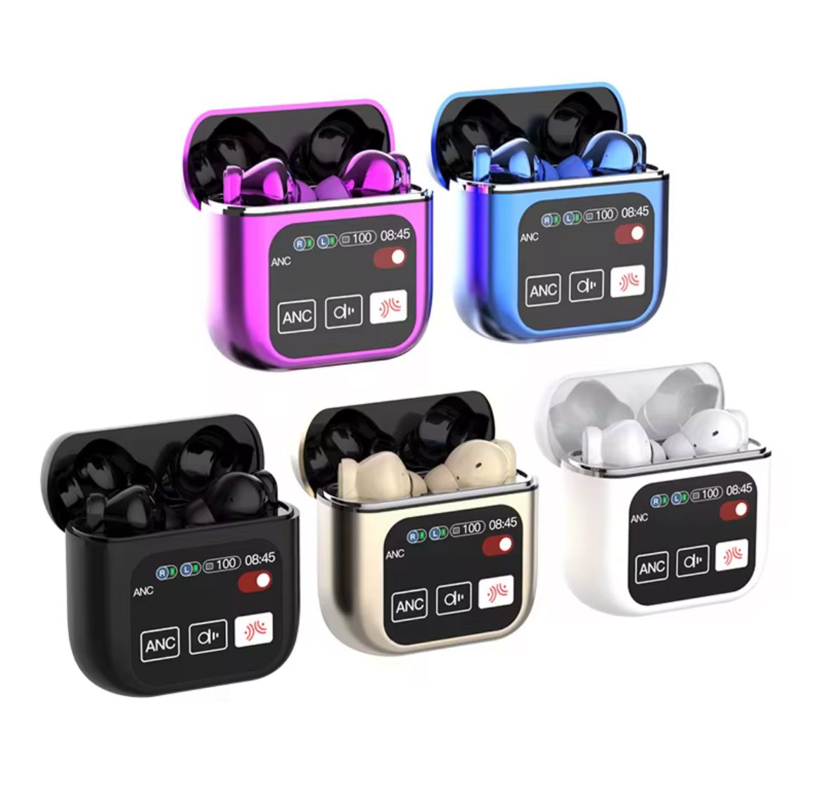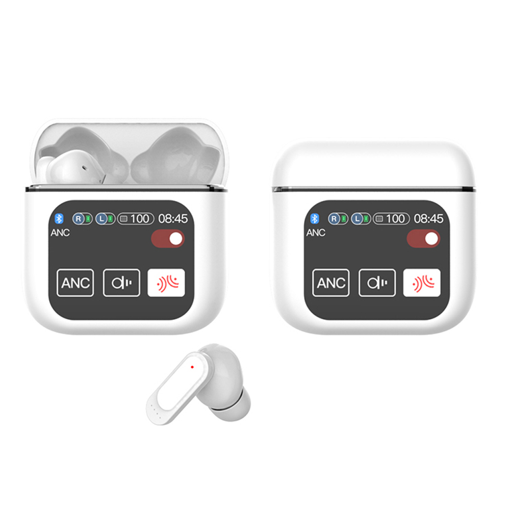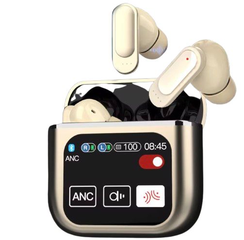 • Pantalla Táctil a Color (LED/TFT): Esta es la característica más distintiva. La pantalla en el estuche de carga permite un control directo e intuitivo de varias funciones sin necesidad de sacar el teléfono. Puedes ver el nivel de batería, controlar la reproducción de música (pausar, reproducir, cambiar de canción), ajustar el volumen, gestionar llamadas, cambiar modos de cancelación de ruido, e incluso tener funciones adicionales como un cronómetro, encontrar los auriculares o cambiar el idioma.