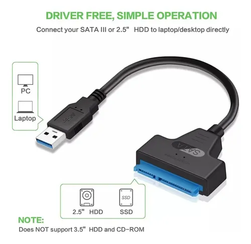 Con el adaptador SATA-USB conecta un disco duro SATA normal (3,5″) o de laptop (2.5″) al USB de cualquier computador laptop o de escritorio, TV Inteligente.
