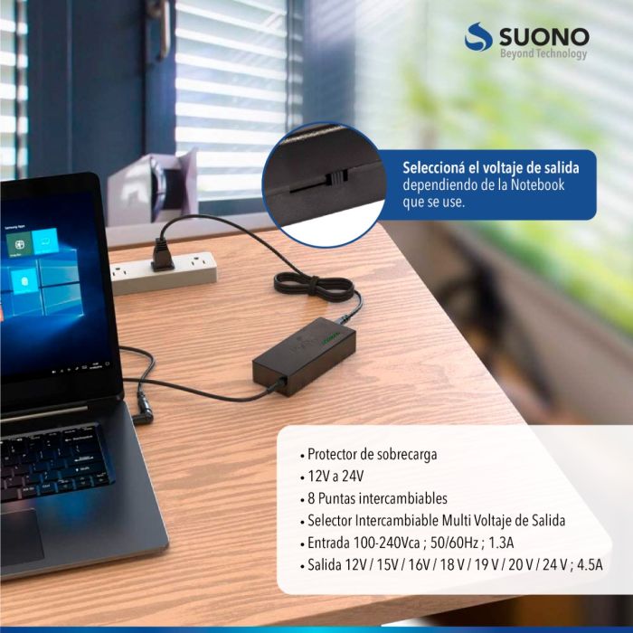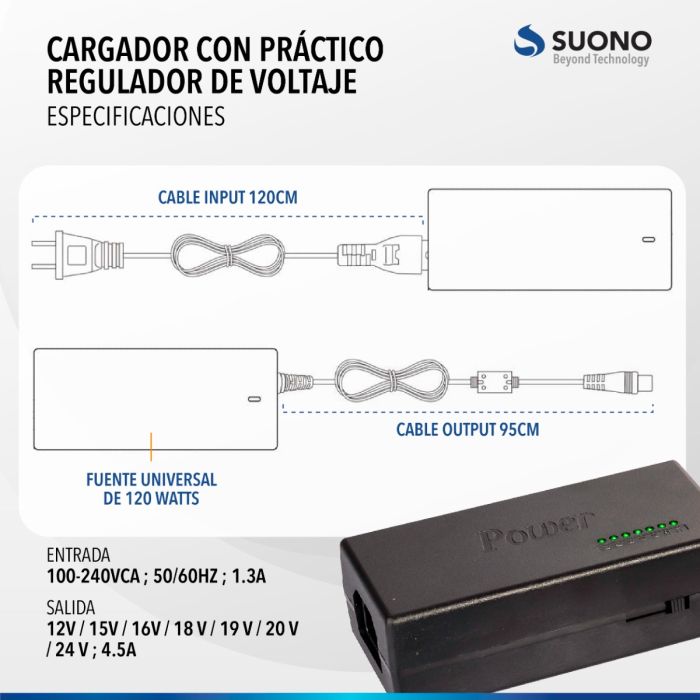 • Salida 12V / 15V / 16V / 18 V / 19 V / 20 V / 24 V ; 4.5A