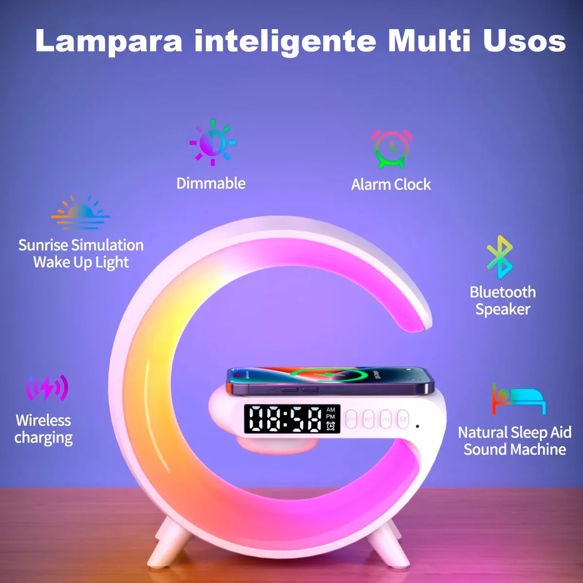 La Corneta G63 es un dispositivo multipropósito que funciona como lámpara de noche con luces RGB además cuenta con una corneta que incluye varias formas de conexión, en las que puedes encontrar conexión a través de bluetooth, entrada auxiliar para conectar cualquier dispositivo que poseen esta conexión y también entrada de tarjeta micro SD, en sus funciones podrás encontrar reloj con despertador y un punto de carga inalámbrica para los dispositivos que posean este novedoso método de transferencia de energía.