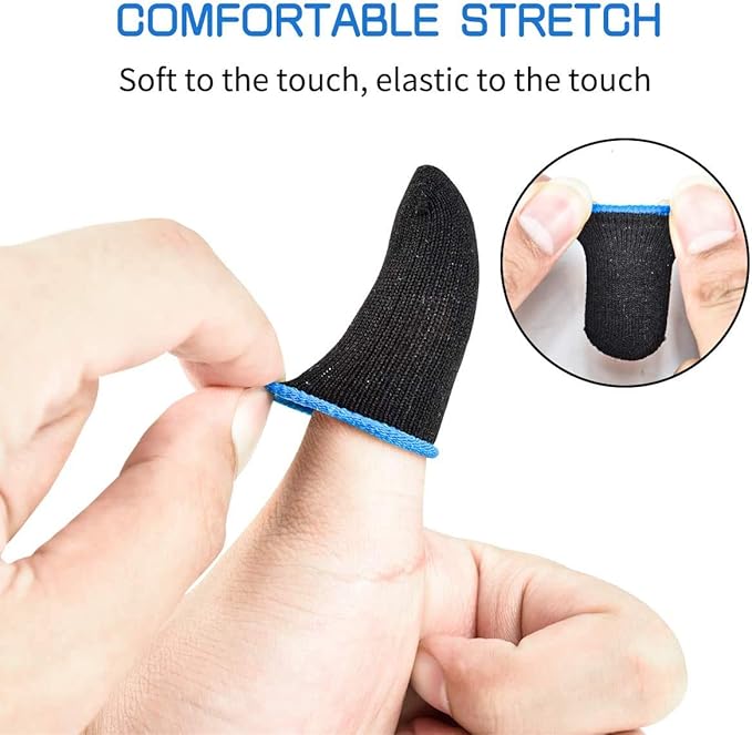 - Compatibles: Compatibles con cualquier dispositivo móvil. Este producto es estirable y se adapta al tamaño del dedo, es posible usarlos tanto en pulgares como en el dedo índice.