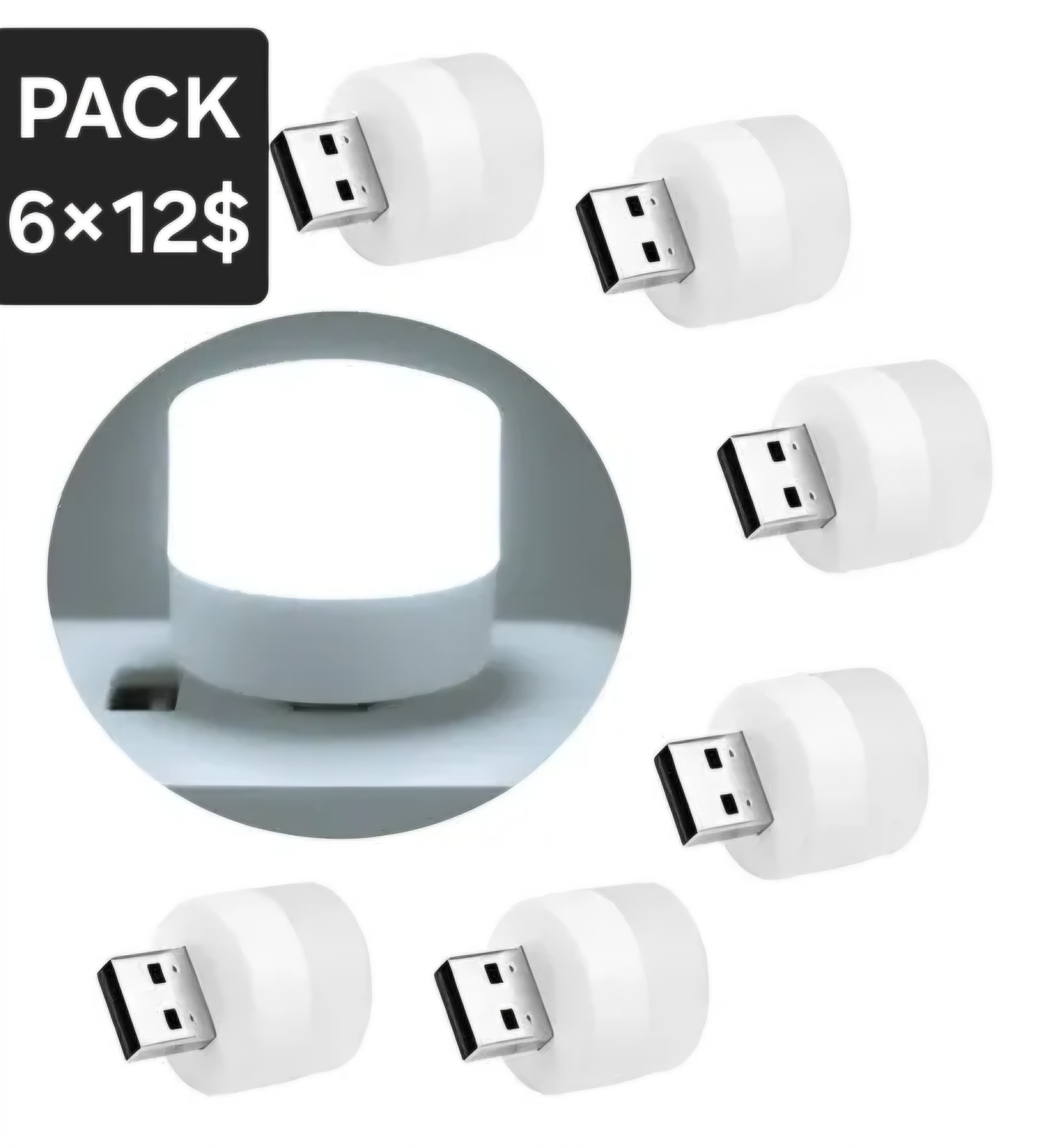 PACK DE 6 MINI LUZ LED NOCTURNA – USB – BLANCA