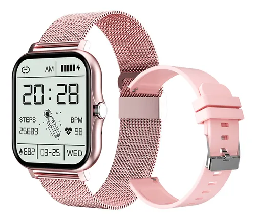 SMARTWATCH LIGE – ROSADO – 2 CORREAS – METALICA Y SILICON – BLUETOOTH